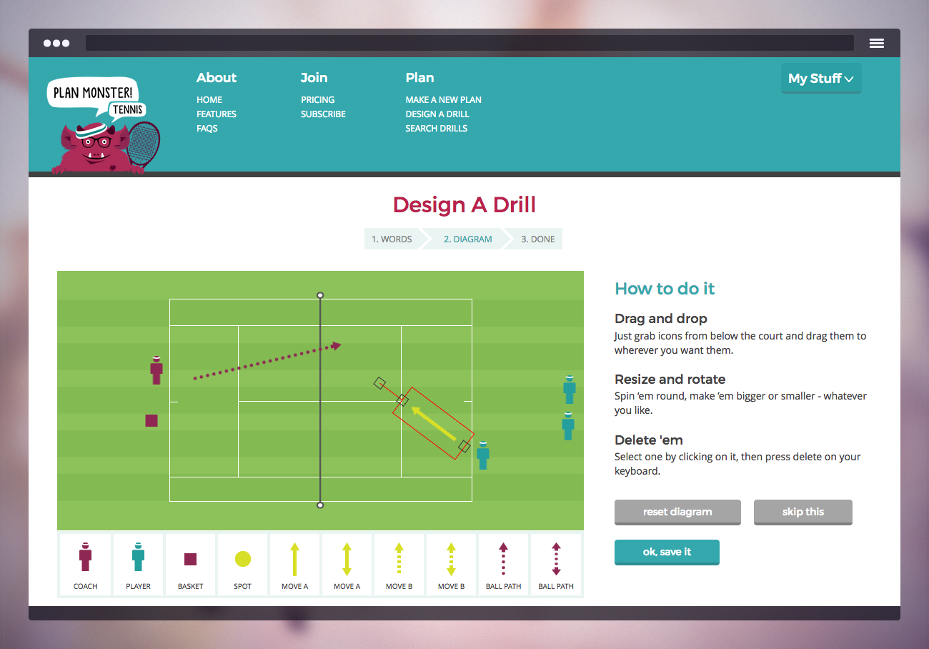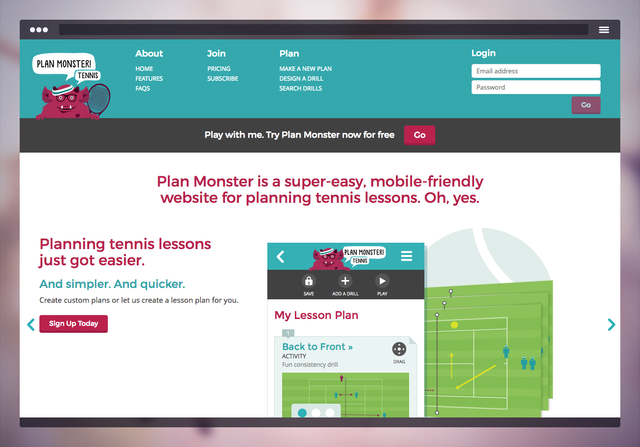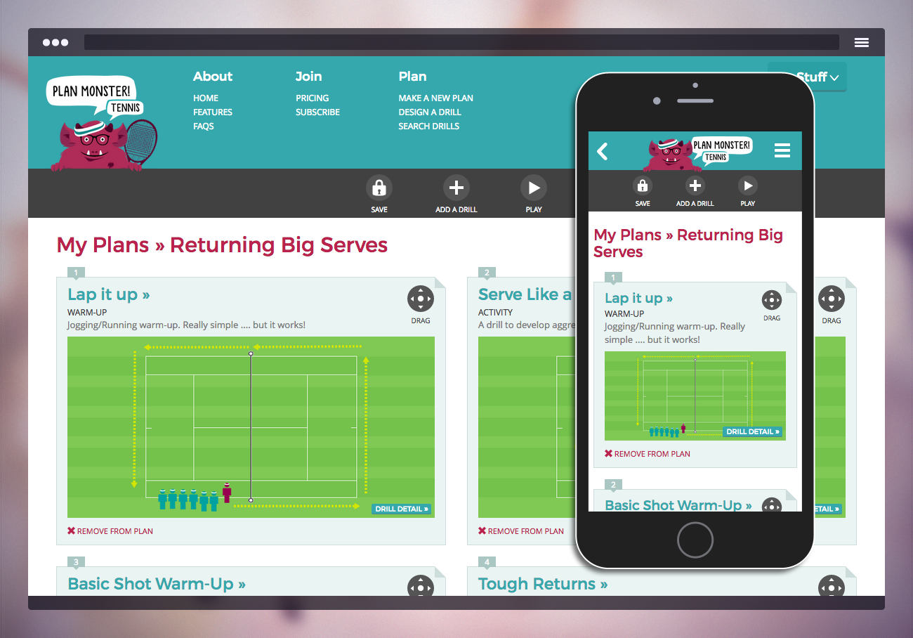 Plan Monster is a drills and lesson planning website for tennis coaches.