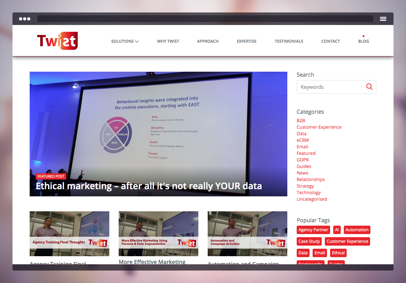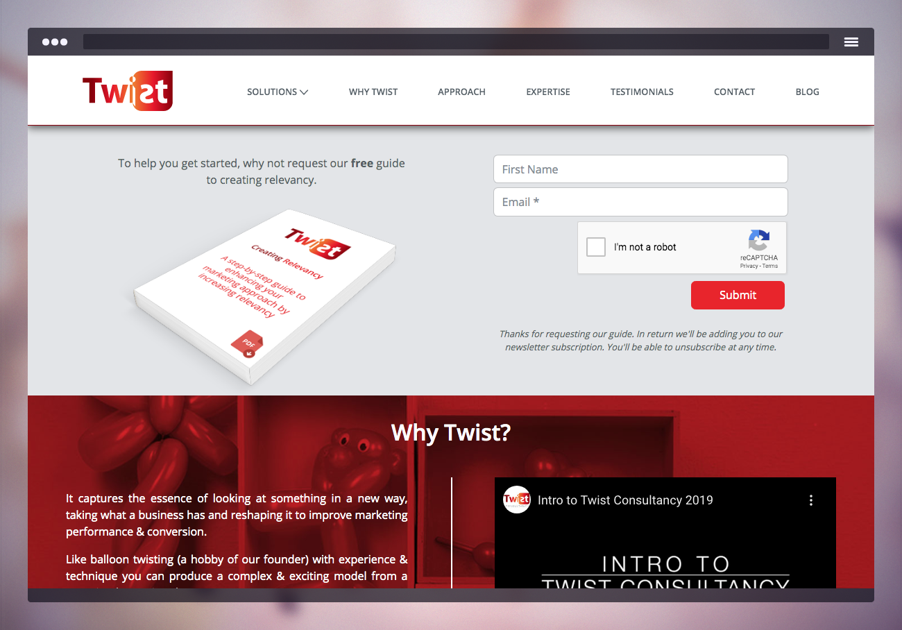 Bespoke WordPress site for Twist Consultancy, an independent marketing consultant